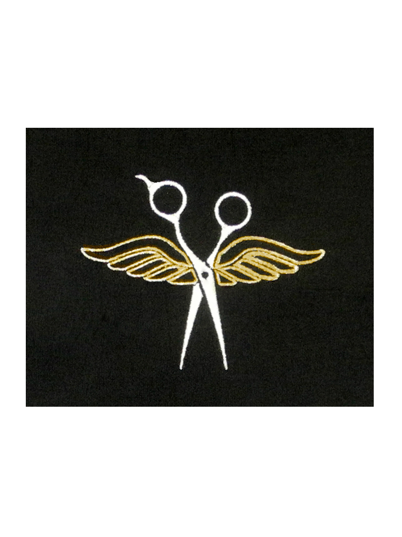 Add this motif to show that you are your client’s angel. Scissors are Metallic Silver. Select wing color. Approximately 4″ Wide x 3.25″ Tall.